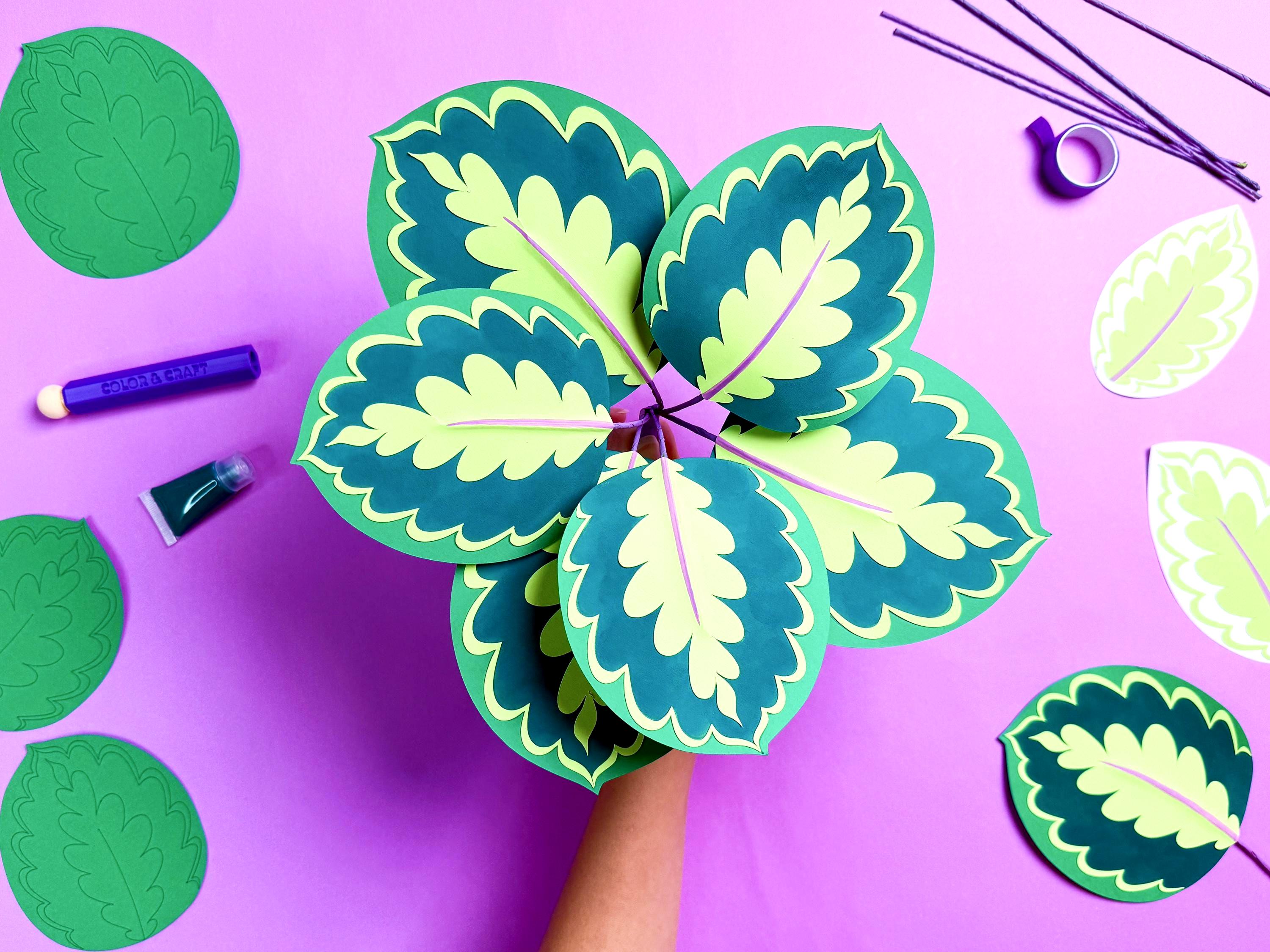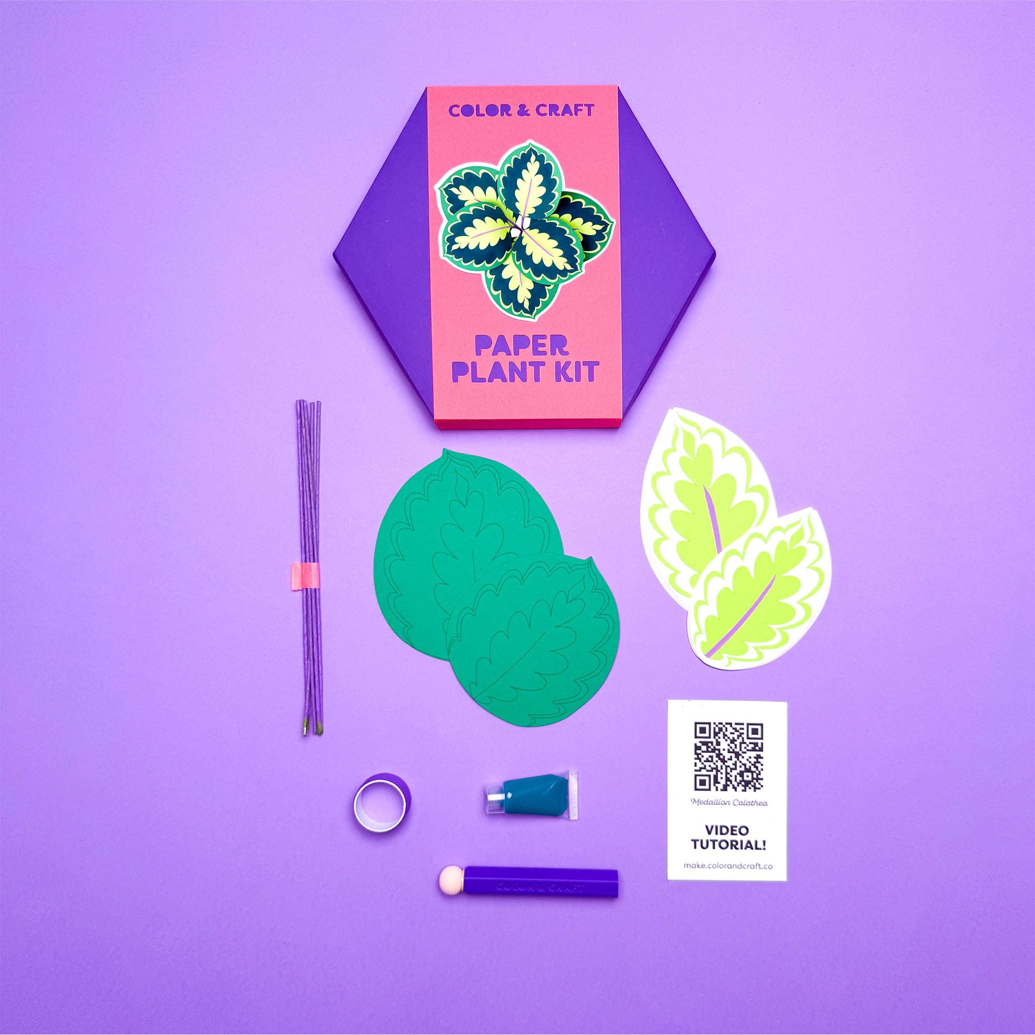 Make a vibrant plant with paper and paint. Hang it on the wall with the included paper hexagon planter. All materials are included and all the pieces are pre-cut!