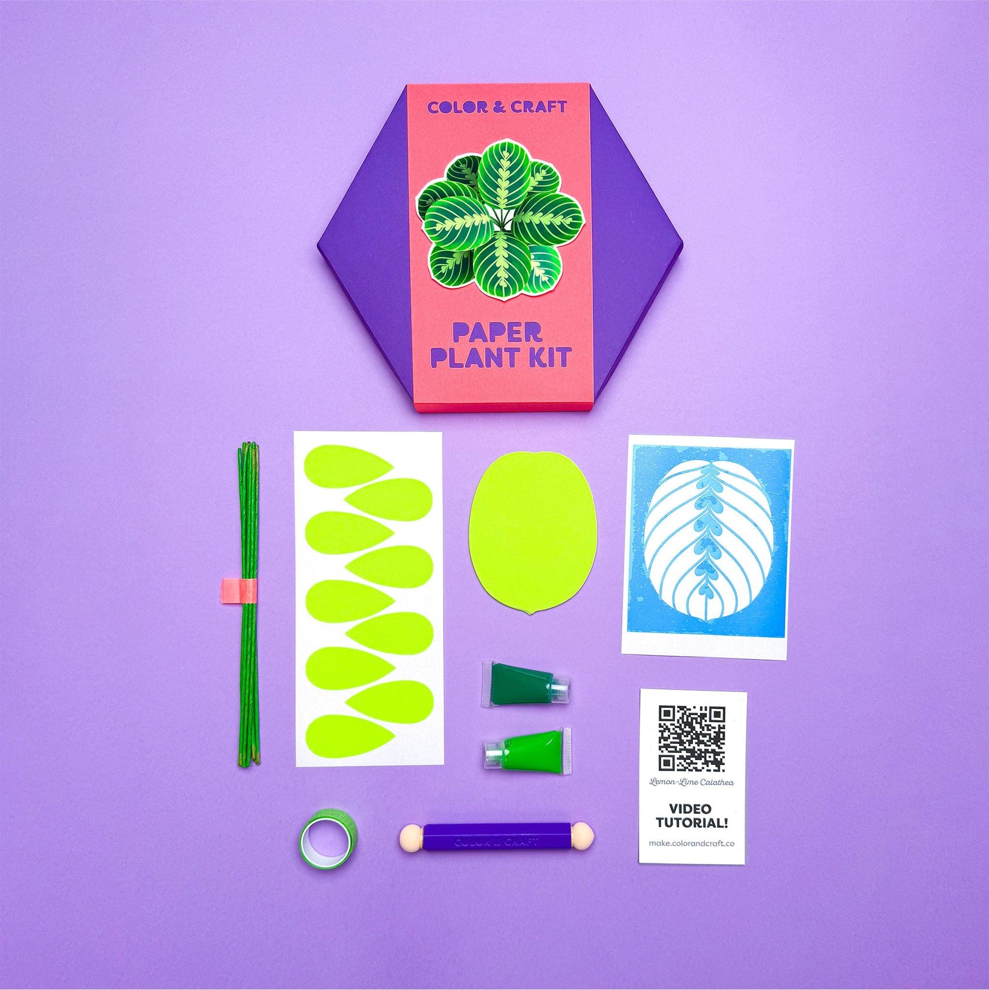 Make a vibrant plant with paper and paint. Hang it on the wall with the included paper hexagon planter. All materials are included and all the pieces are pre-cut!